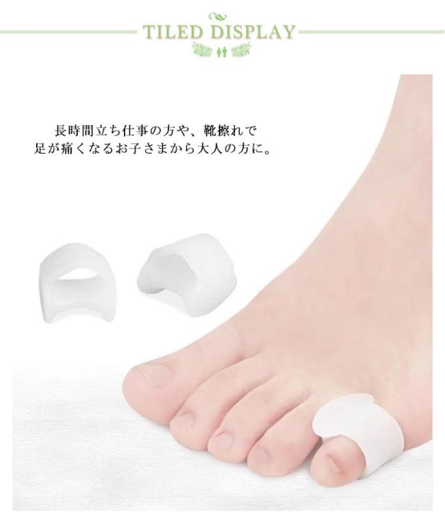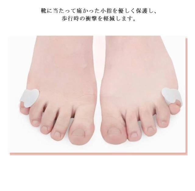 | シリコンサポーターで足指の歪みをサポート!小指に装着し、薬指との間を広げます。 長時間立ち仕事の方や、靴擦れで足が痛くなるお子さまから大人の方に。 歩行時の衝撃を抑え、足指をやさしく保護する内反小趾補助用具です。 靴に当たって痛かった小指を優しく保護し、歩行時の衝撃を軽減します。 やわらかな素材なので摩擦や痛みを軽減します。洗えるので繰り返し使えて衛生的です。 | |
