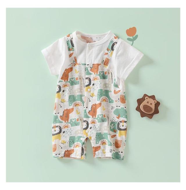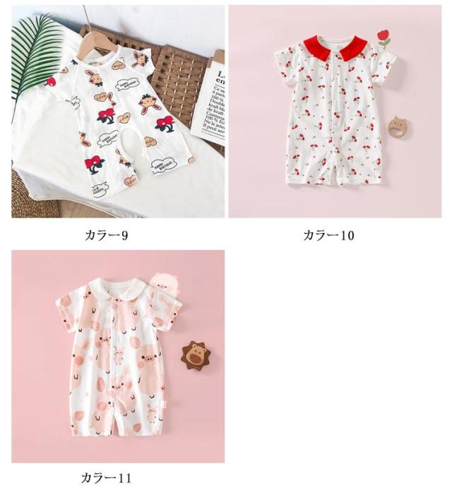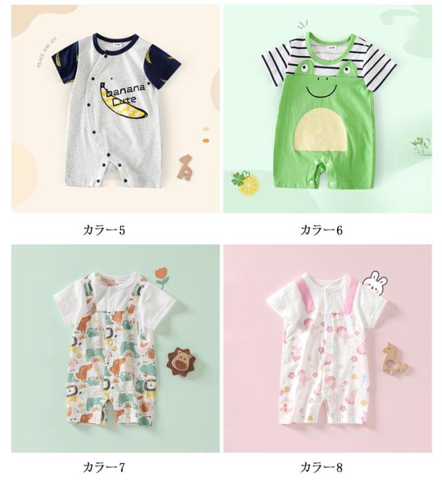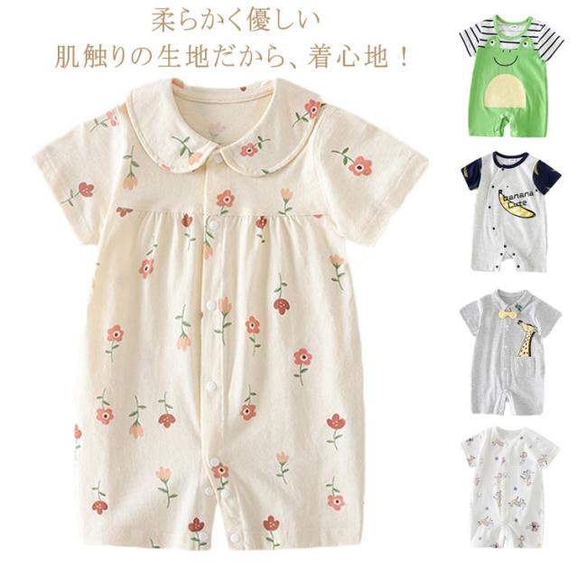 ベビー服 ロンパース 半袖 カバーオール 女の子 男の子 前開き ベビー服 春 夏 ベビー 新生児 子供服 キッズ 動物 かわいい おしゃれ ナチュラル ロンパス 59 66 73 80 90 100 あせも対策 薄手