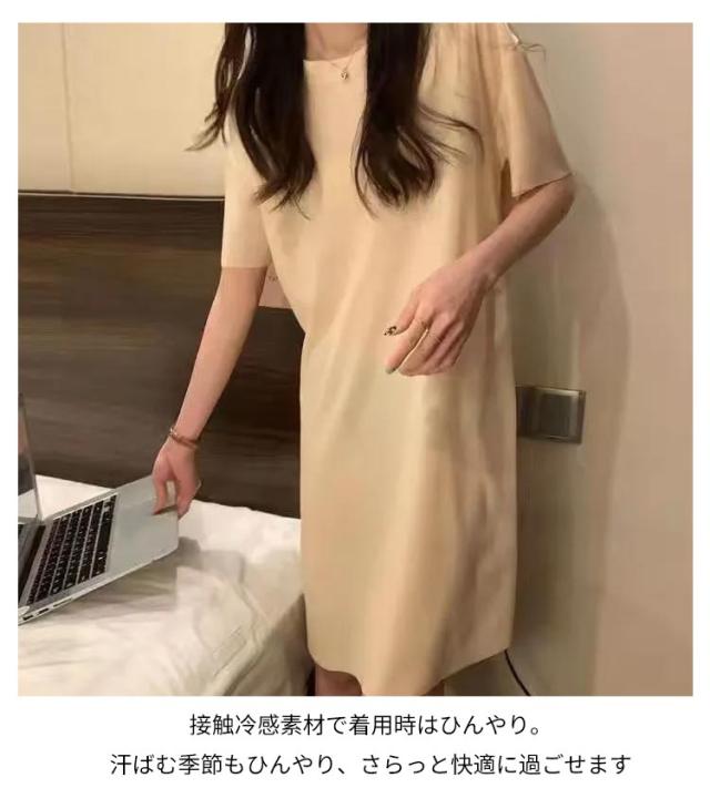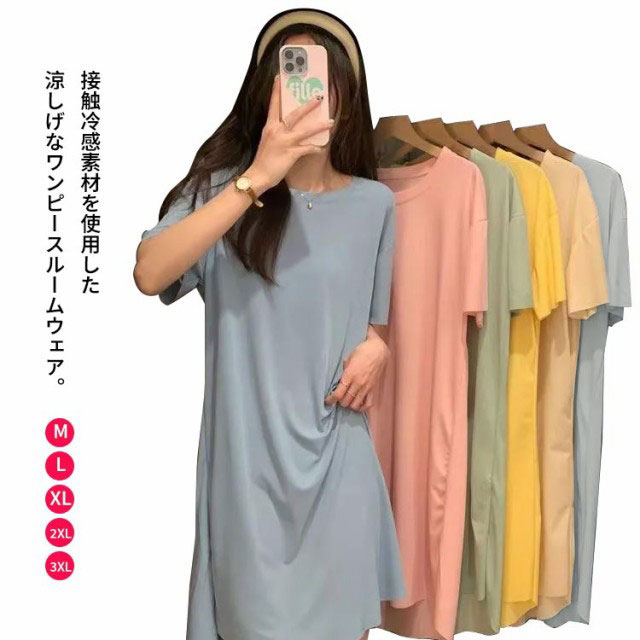 ルームウェア ワンピース 接触冷感 パジャマ レディース 半袖 部屋着 涼感 ロング丈 ワンピ 夏 夏用 ひんやり 涼しい 冷感 アイスシルク ワンマイルウェア ナイトウェア 無地 産後 マタニティ パジャマ 体型カバー 着痩せ 大きいサイズ ゆったり 春夏 夏 送料無料