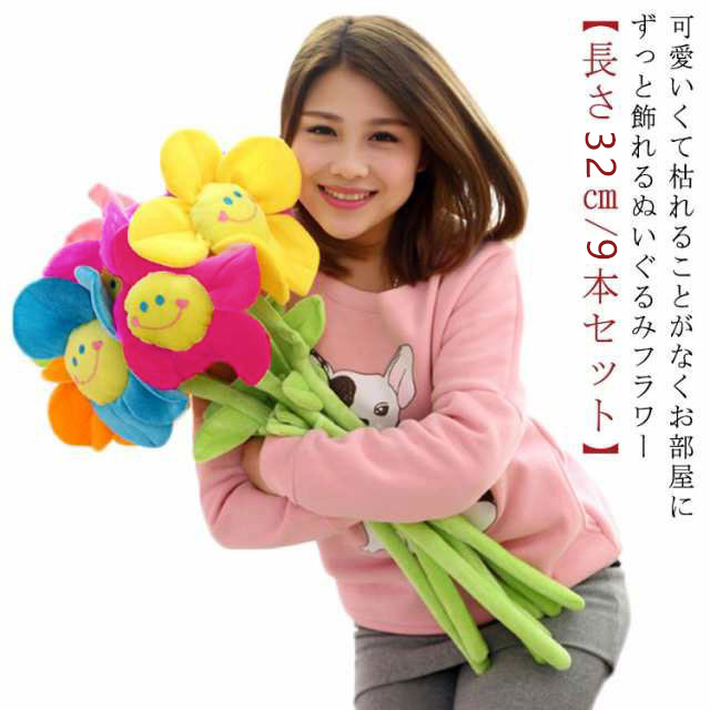 スマイルフラワー ぬいぐるみ 造花 花 花束 長さ32cm/9本セット ブーケ 式 ぬいぐるみ花 ブーケ 装飾花材 イベント花材 ぬいぐるみブーケ 枯れない花 卒園 卒業 卒部 離任 お祝い 入園 入学 出産祝い 誕生日 おむつ ケーキ 母の日 ギフト プレゼント 贈り物 送料無料