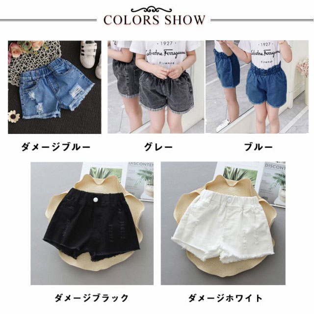 | 【選べる10色!】 【100cm 〜 160cm】 かわいいデニムショートパンツ 裾フリンジ&ダメージ加工がオシャレ ウエストがゴムなので楽ちんです。 カラー、サイズ展開豊富なので毎日違うコーデを楽しめます。 | |