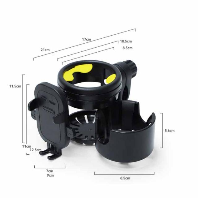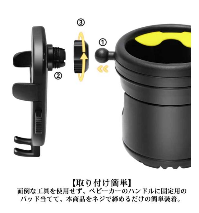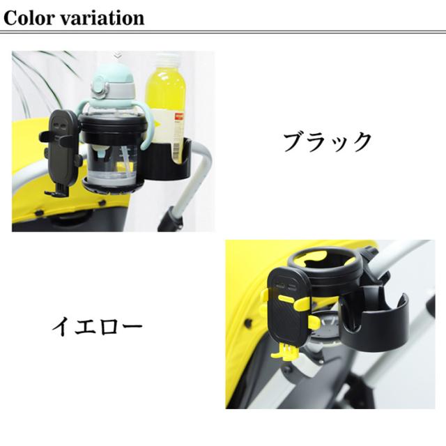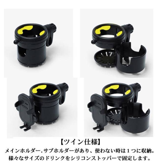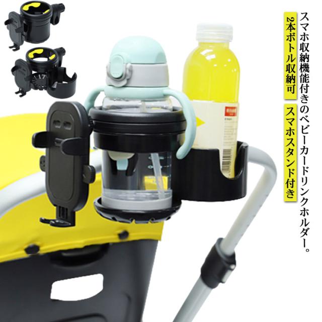 ベビーカー ドリンクホルダー スマホ ボトルホルダー 2個 飲み物 哺乳瓶 ホルダー カップホルダー おしゃれ 360度回転 角度調整可 スマホ収納 取り付け 取っ手付きボトル 収納 ペットボトル ホルダー 水分補給 車椅子 自転車 【送料無料】