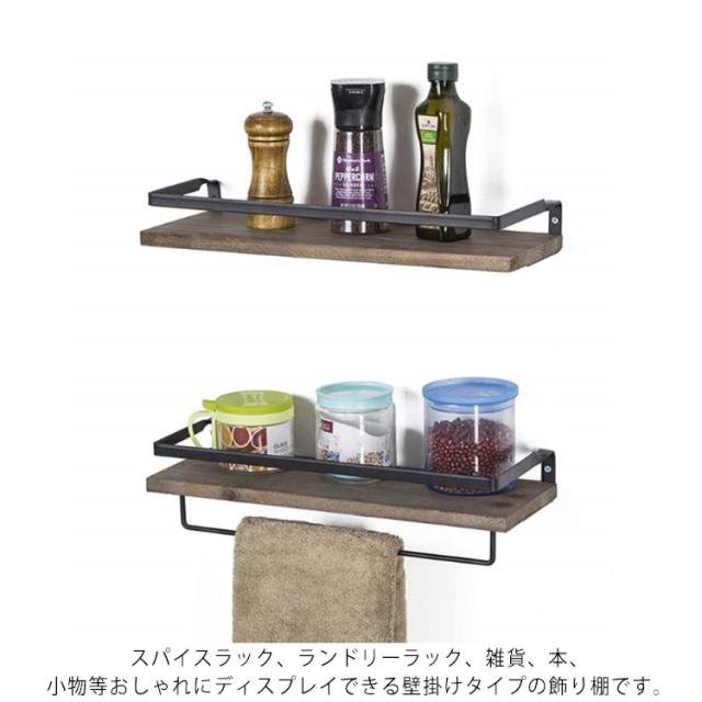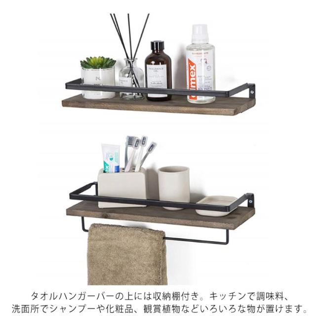 2個セット タオルハンガー ウォールシェルフ 壁 棚 飾り棚 洗面所 トイレ 壁 タオル掛け 木製 棚付 タオルホルダー 壁掛け棚 タオル掛けハンガー 天然木 アイアン ウォールラック タオルラック 小物収納 キッチン棚 おしゃれ 北欧 インテリア ヴィンテージ 簡単 設置