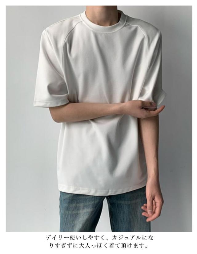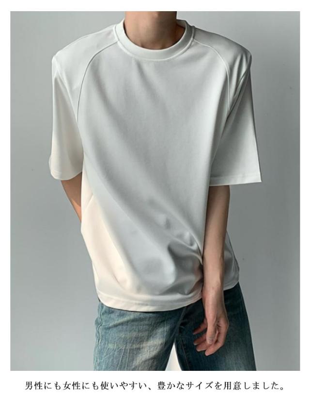 肩パッド入りtシャツ メンズ レディース 半袖 カジュアル おしゃれ カットソー 薄手 春夏 レイヤード 重ね着 トップス スタイルアップ 大きいサイズ 体型カバー シンプル ゆったり 快適 着回し 無地 大人 男性 ギフト 送料無料