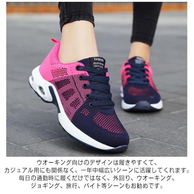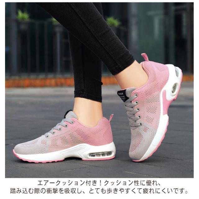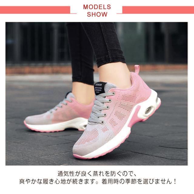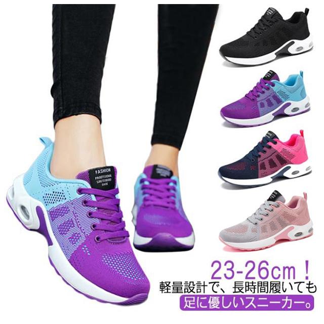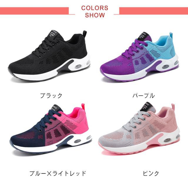 スニーカー レディース シューズ エアークッション 靴 衝撃吸収 外反母趾 疲れない ランニングシューズ ウォーキングシューズ 軽量 厚底 滑り止め 幅広 アウトドア カジュアル 運動靴 ジム 散歩 通学 通勤 通気性 大きいサイズ 23-26cm