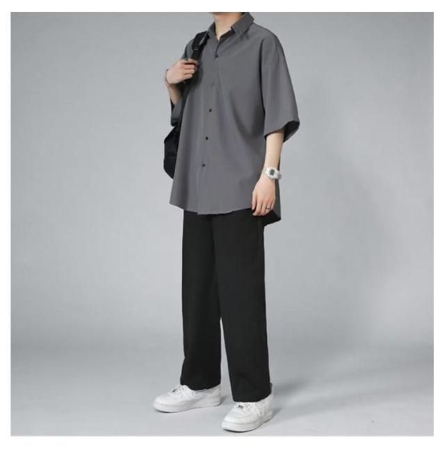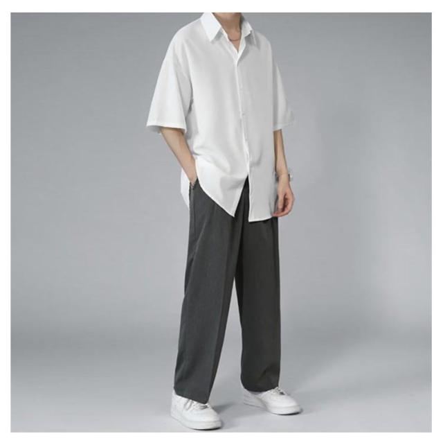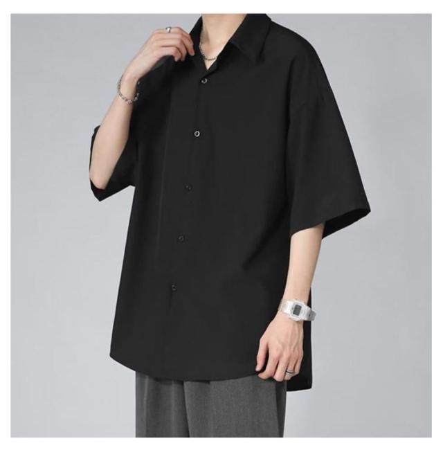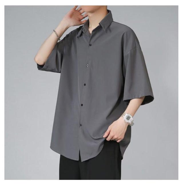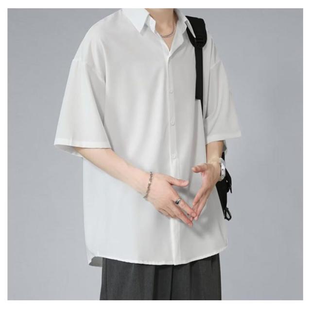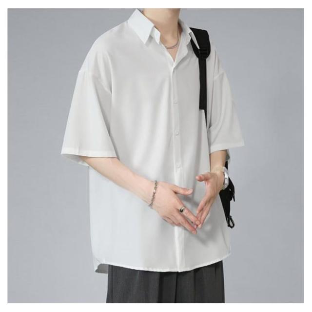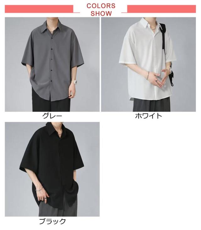 半袖シャツ メンズ シャツ 半袖 涼しい 接触冷感 オーバーサイズ アイスシルクシャツ ドルマン シワにならない ビッグシルエット オーバーサイズ 半袖シャツ ロングシャツ ビッグシャツ 無地 とろみ 父の日 ギフト 送料無料