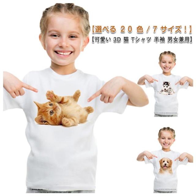 可愛い 3D 猫 Tシャツ 半袖 キッズ tシャツ 猫tシャツ 子供 3D tシャツ 白 半袖 大きいサイズ おしゃれ ティーシャツ 女の子 男の子 トップス プリント ネコ柄 キッズファッション キレイめ カジュアル 夏 メンズTシャツ カットソー ゆったり 送料無料