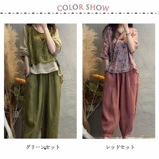 セットアップ レディース 半袖 夏 ワイドパンツ リネン tシャツ 春 夏 パンツスーツ 綿麻 パンツ サルエルパンツ ひんやり 接触 冷感 ブラウス ゆったり 柔らかい 美シルエット 美脚 涼しい 着痩せ 40代 50代 きれいめ 大人 オフィス リラックス 通勤 カジュアル 送料無料