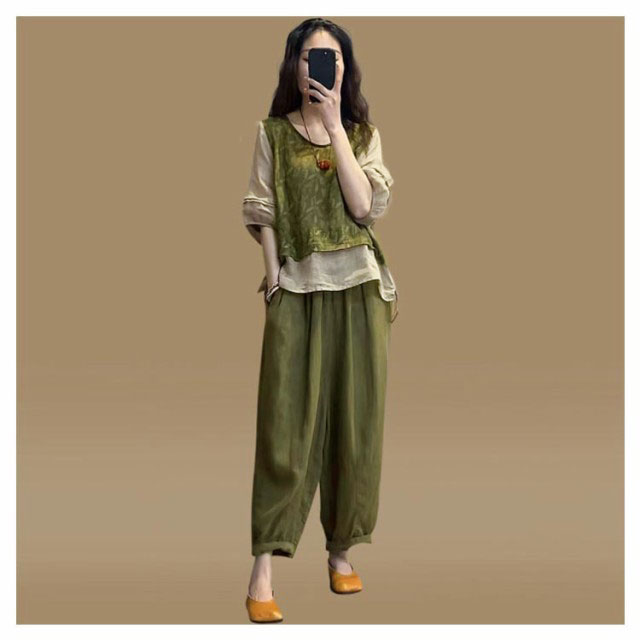 | 森ガールのナチュラルな風合いセットアップ 清涼感あり、薄い素材タイプ、夏の間も着用ができるほど薄手で肌触り 伸びにくく丈夫であり、吸湿性があって肌触りもよい。 シンプルで着回しやすいので、 一枚は持っておきたいアイテム 別々に使ってもとても着回しの利くおすすめアイテムです | |