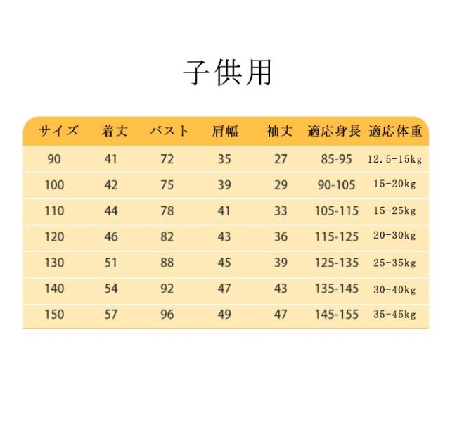 | サイズ | 女の子90cm 女の子100cm 女の子110cm 女の子120cm 女の子130cm 女の子140cm 女の子150cm 男の子90cm 男の子100cm 男の子110cm 男の子120cm 男の子130cm 男の子140cm 男の子150cm |