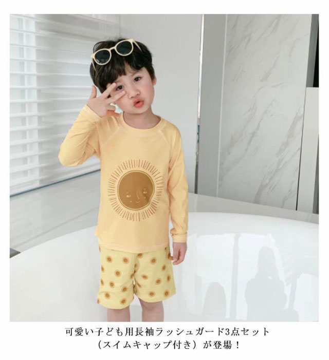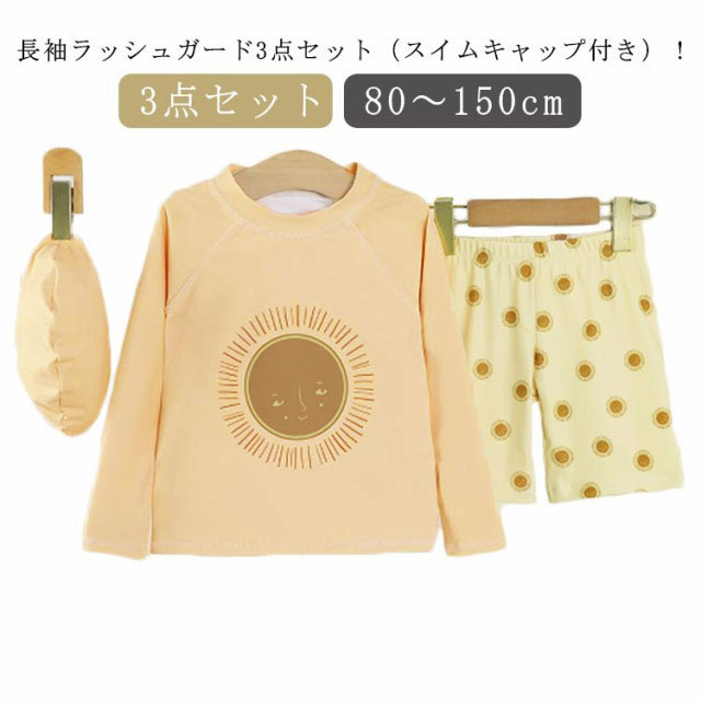 | 【3点セット】 【80 〜 150cm】 【長袖ラッシュガード3点セット(スイムキャップ付き)!】 可愛い子ども用長袖ラッシュガード3点セット(スイムキャップ付き)が登場! 長袖トップスとハーフパンツの水着上下セット★ 夏休みの旅行や海、プール教室、おうちプール、砂遊びなどで活躍します! | |