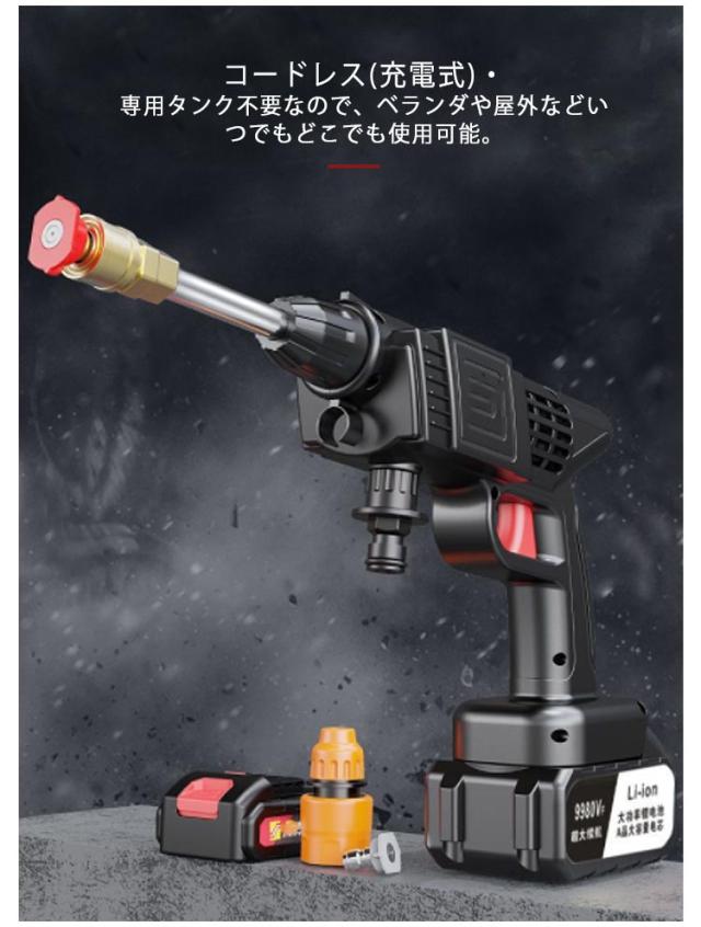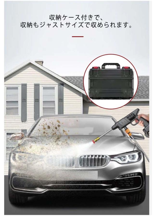 高圧洗車機 洗車ガン 高圧噴射 大容量 バッテリー 自吸式 軽量 小型 水圧 洗車機 洗車用品 高圧洗浄機 コードレス 充電式 セット 大容量バッテリー 小型 ポータブル 自吸式 収納ケース付 ウォーターガン 多用途洗浄 送料無料