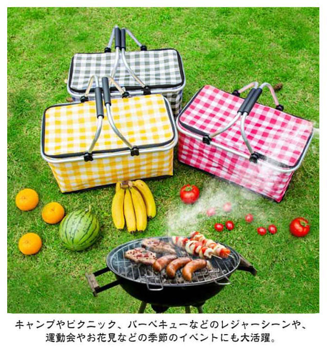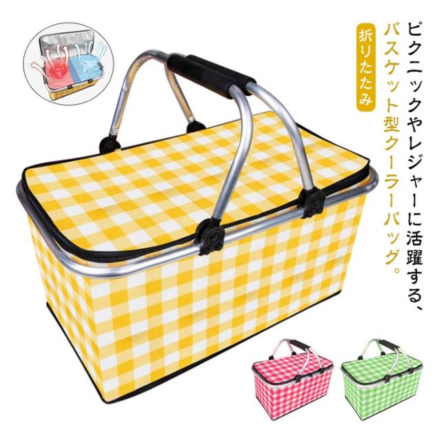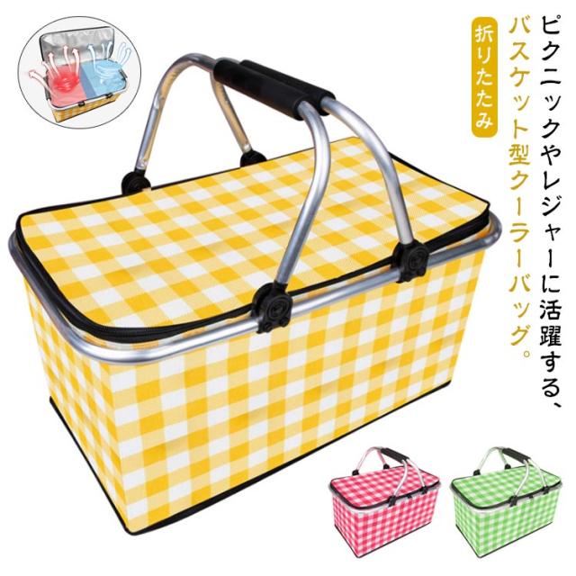 クーラーバスケット 30L 保冷バッグ クーラーバッグ 折りたたみ 保冷バスケット チェック柄 大容量 ピクニック バスケット レジャーバッグ 保冷 保温 バッグ 買い物かご エコバッグ 運動会 キャンプ アウトドア レジャー 花見 BBQ 旅行 ランチボックス おしゃれ かわいい
