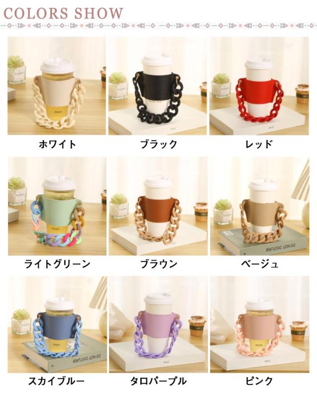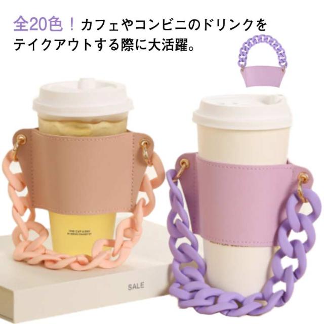 | 全20色!カフェやコンビニのドリンクをテイクアウトする際に大活躍。 テイクアウトしたドリンクをオシャレに持ち運べる、チェーン付きカップホルダーです。 持ち運びだけでなく、お洒落なスリーブとしても便利です。 PUレザー製でアイスでもホットでも使えます。 かわいい雑貨として入学祝いなどのお祝い用プレゼントに最適です。 ベビーギフトやキッズギフトとして贈り物としても喜ばれます。 | |