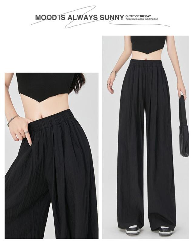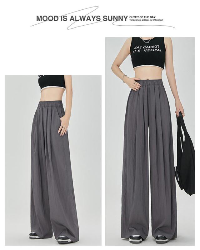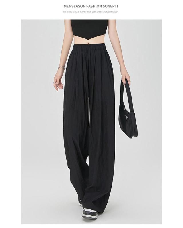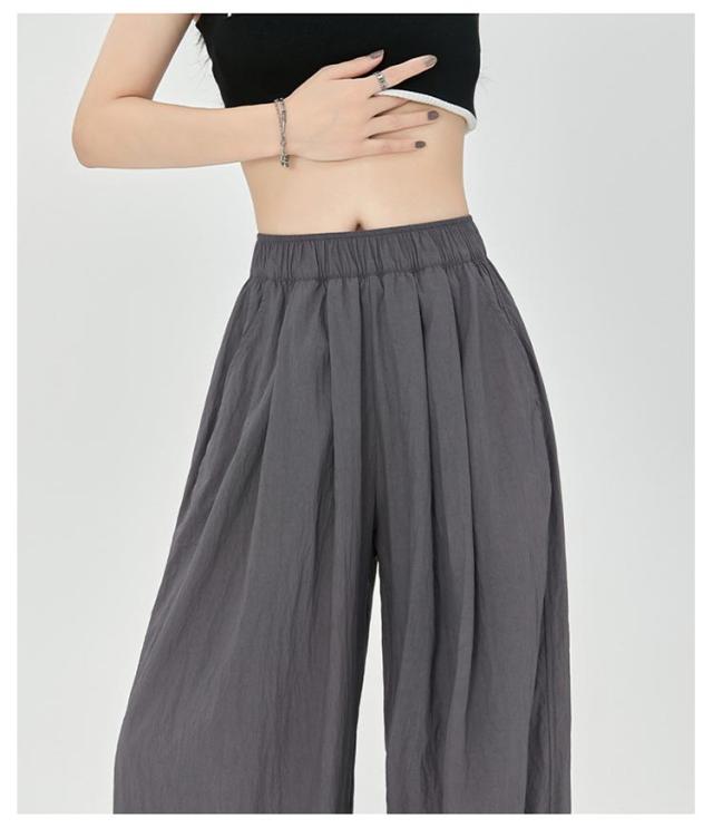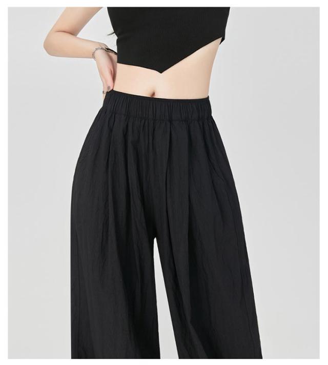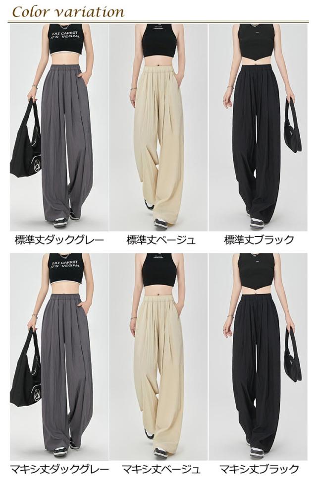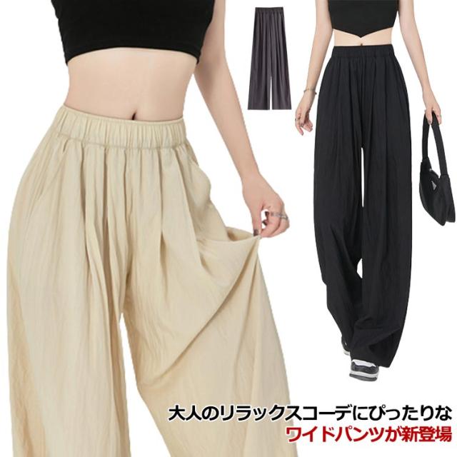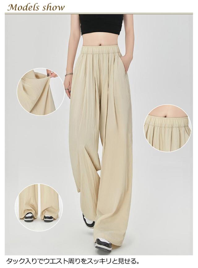 ワイドパンツ フロントタック入り レディース ボトムス 涼しい 夏 ひんやり 軽い ウエストゴム ロングパンツ ストレートパンツ イージーパンツ ガウチョパンツ シワ加工 接触冷感 さらさら リラックス 楽ちん ゆったり カジュアル オフィス デイリー 無地 送料無料