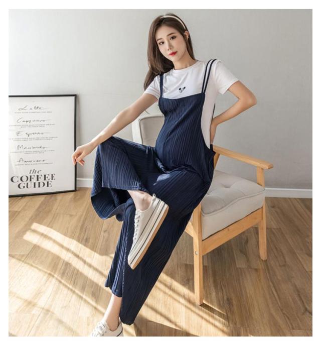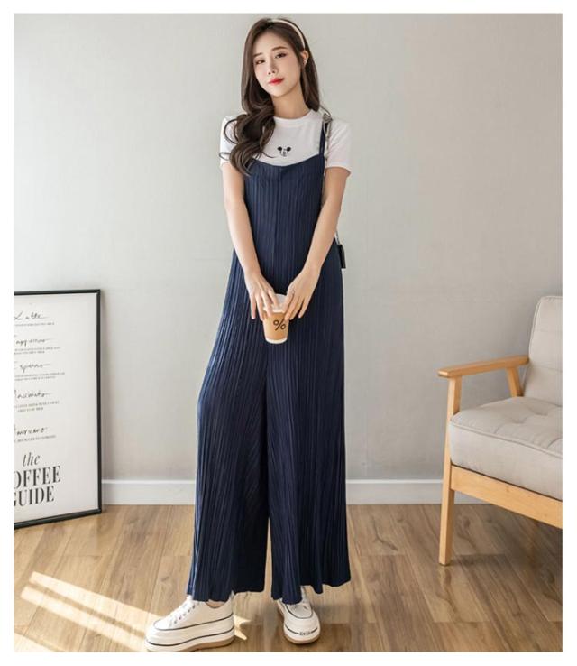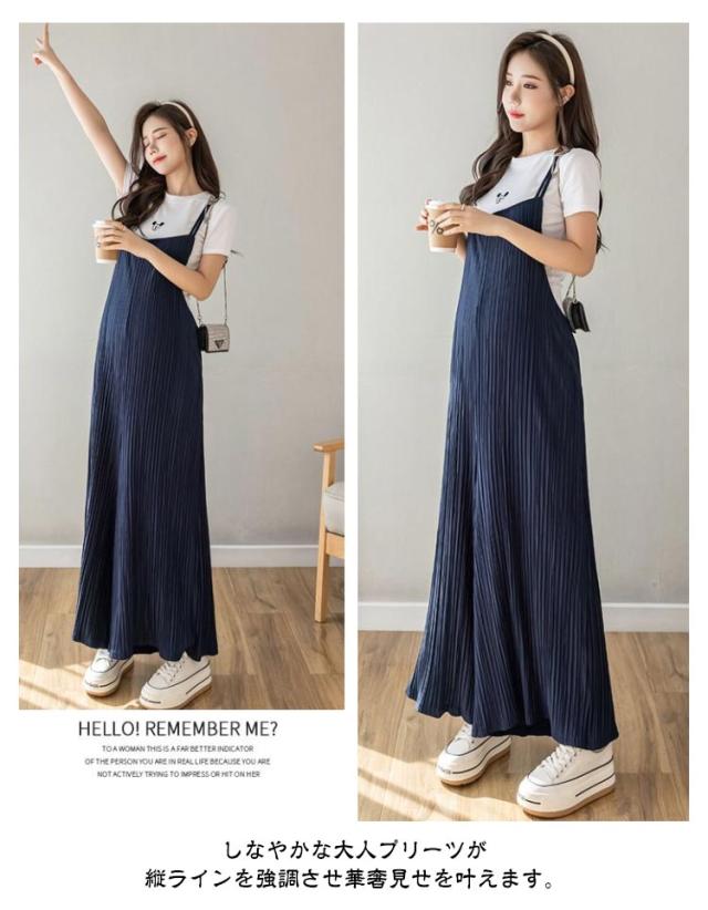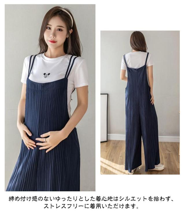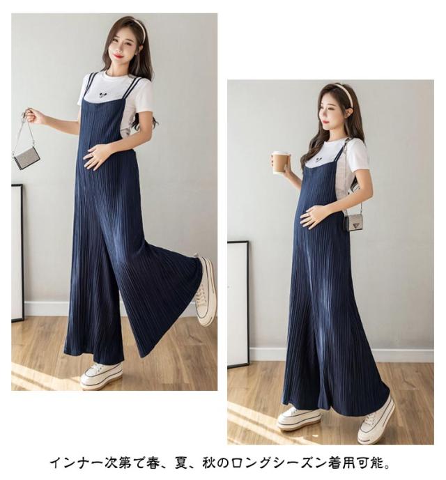 サロペットパンツ マタニティウェア プリーツパンツ レディース プリーツオーバーオール ゆったり プリーツサロペットワイドパンツ 産後 産前 プリーツ サロペット ワイドパンツ オールインワン