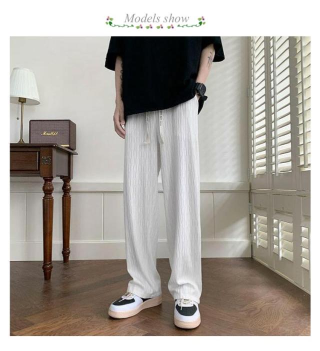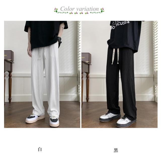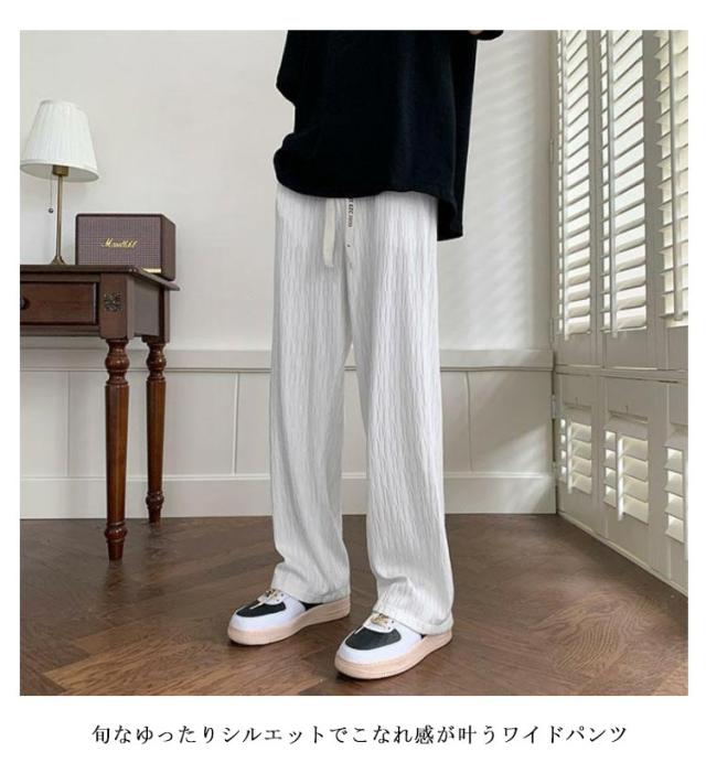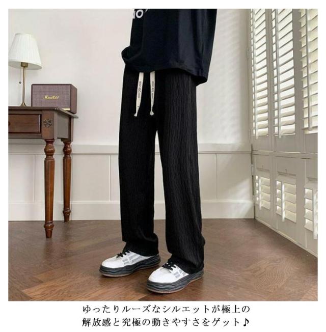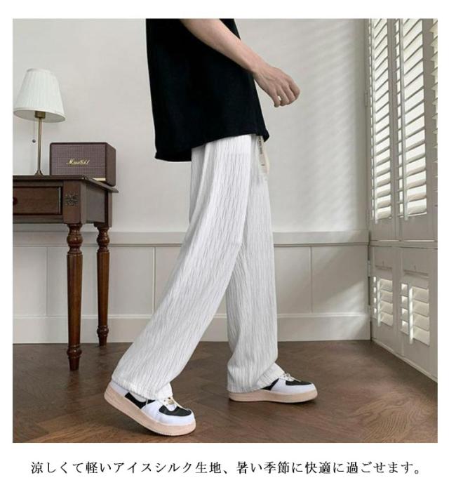 リラックスパンツ ルーズパンツ イージーパンツ ワイドパンツ メンズ 無地 ゆったり 薄手 アイスシルク パンツ ルーズフィット 韓国ファッション 夏パンツ 春 ストリート系 大きいサイズ ストレート 長ズボン