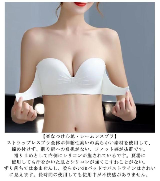 ストラップレスブラ 紐なしブラ 落ちない ずれない 三重滑り止め 盛れる 谷間 バストアップ チューブトップ ノンワイヤー ブラジャー 脇高 シームレスブラ 結婚式 オフショル インナー ブラ 美胸 美背 シンプル 無地 小胸 盛りブラ ブラ単品 送料無料