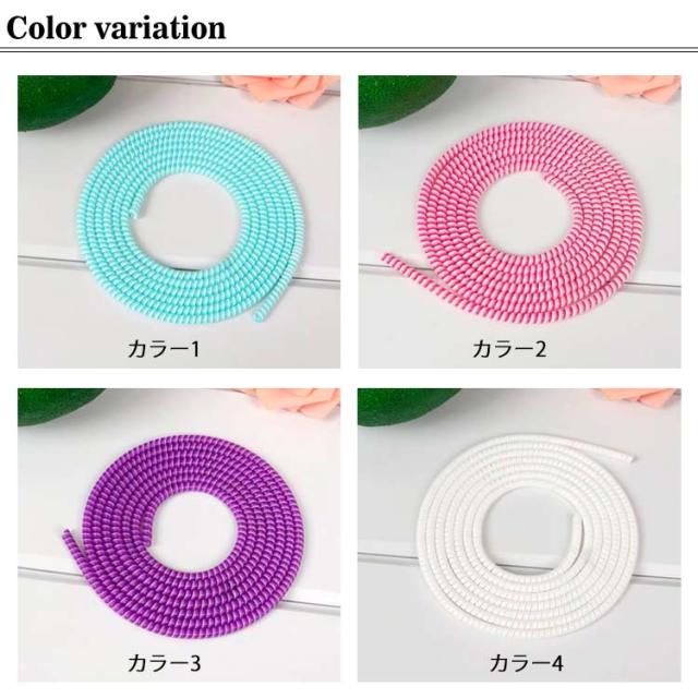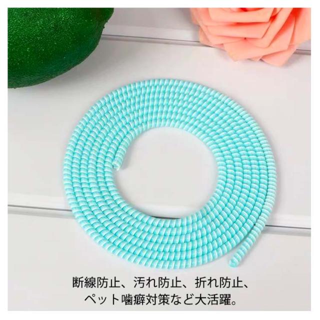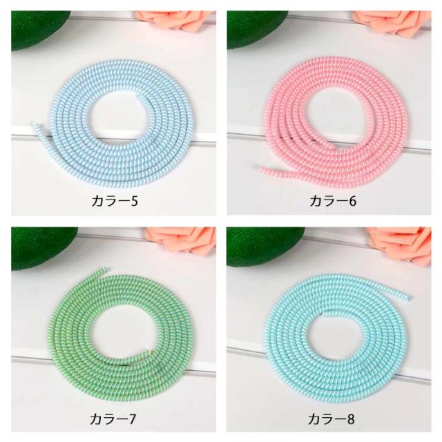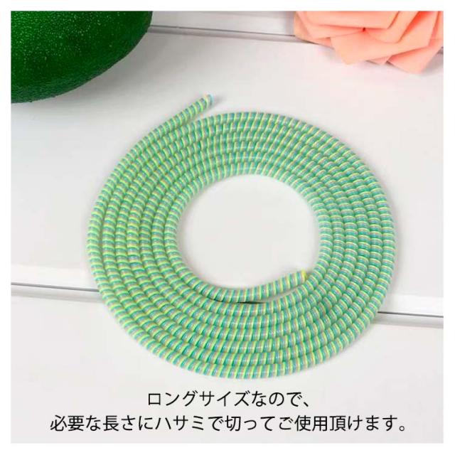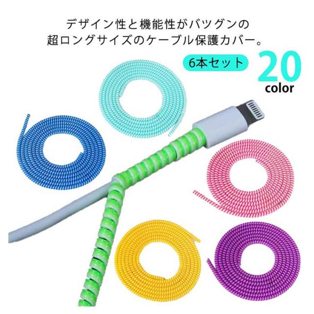 【6本セット】iPhone 充電ケーブル カバー ロング 断線防止 USBケーブル 保護プロテクター ケーブルカバー カール カバー 折り防止 汚れ防止 配線 保護 スパイラル スマートフォン PC パソコン アクセサリー