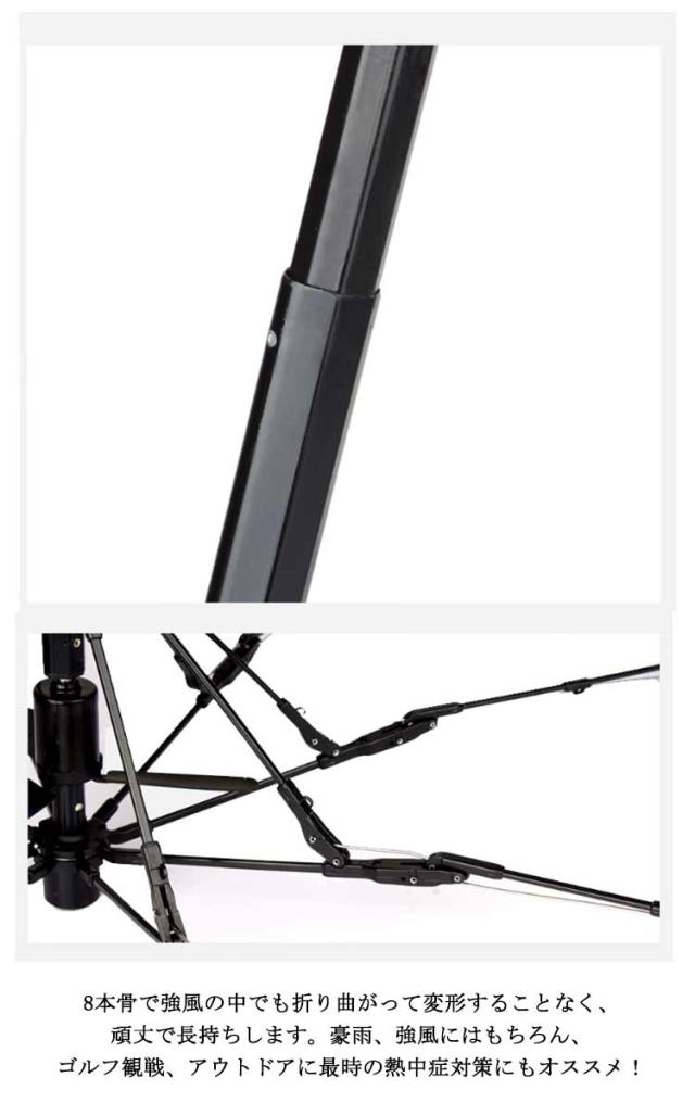| サイズについての説明 | F 長さ:39cm 直径:約105cm 中骨:8本 重さ:530g 電池容量:2600mAh 使用時間:12時間 |