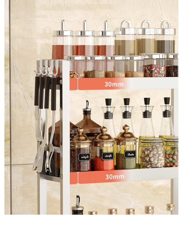 | 調味料などがごちゃつきやすいキッチンのシンク周りに適したラックです。【ステンレス製】【幅30?35?40?50cm】【奥行き14cm】 丈夫で錆びにくいステンレスで仕上げ 脚部用のすべり止めが付いているので、防滑で安定感があります。また、ゴム製の滑り止めが柔らかくて貴重な家具を傷つけません。 スリムで2段式のスパイスラックなので、少しスペースがあれば、大量収納できます。 調理道具などをかけられるフック4個付き デットスペースを活用できるシェルフ。コンロ脇のスペースにもぴったり。 調味料、スパイス類、キッチン道具、小物を一括収納できます。 | |