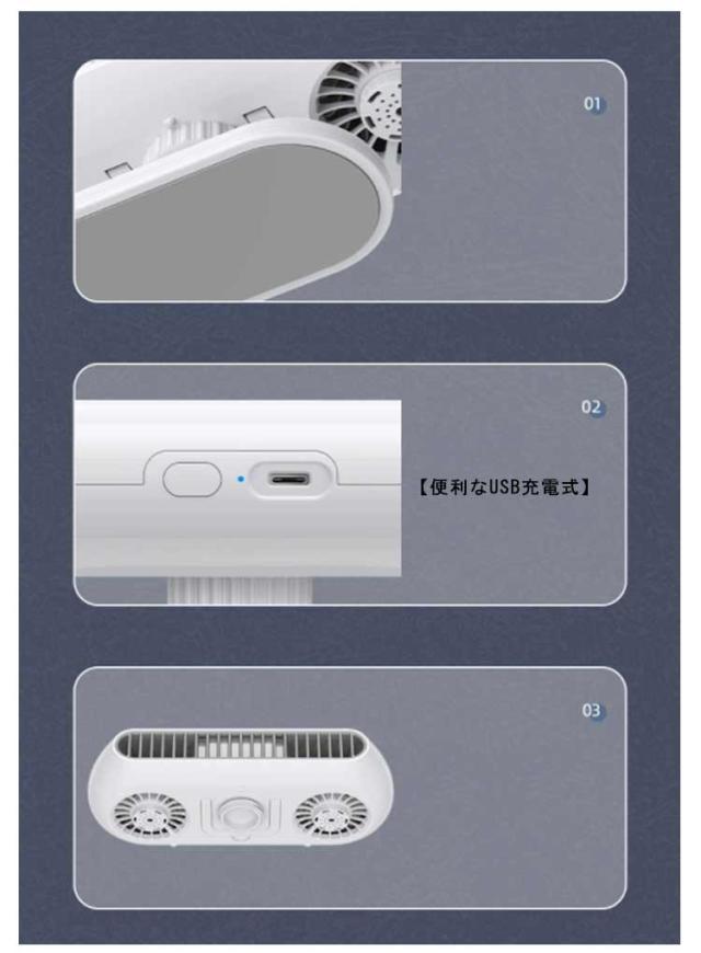 車用扇風機 USB扇風機 無羽根 4段階風量調節 2400mAhリチウムイオン電池付き USB-TypeC充電ポート 取付簡単 低騒音 省エネ 空気循環 蒸れ解消 夏対策 卓上/車内両用
