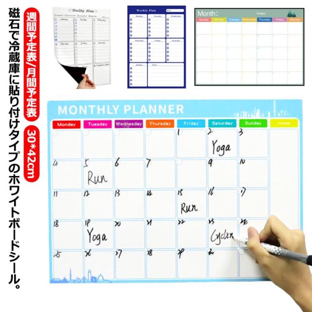 | 磁石で冷蔵庫に貼り付けタイプのホワイトボード。【週間予定表/月間予定表】【30*42cm】 【月/週/日常予定】冷蔵庫用ホワイトボードシートは、毎月、毎週、毎日の日常計画を容易にします。仕事、生活、勉強の効率を上げるために、やること、予約事項、買い物の計画、食事手配、家族記録、伝言メモ、スケジュール、子供の宿題などのリストを自宅の目立つ場所に整然と表示することができます。 【書き・消しやすい】高品質のPET材料を採用され、マグネットスケジュールの表面は滑らかで、書きやすい。書き間違えたら付属の消しゴムで簡単に消すことができます。痕跡を残さず、長い間残したインクでも大丈夫です。何度も繰り返して拭いても表面に影響がありません。ご注意:油性ペンを書くときれいに消せないので、専用ペンをおすすめします。長時間インクが残って落ちにくい場合は、水性インクのため、湿らせたタオルで簡単に拭き取ることができます。 製品の表面を傷つけないように、他の化学溶剤を使用しないでください。 【強粘着力・簡単インストール】ホワイトボードシートの裏には0.5 mmの厚さの磁石の薄板を使い、冷蔵庫、オフィス用ホワイトボード、他の鉄製品の表面に丈夫に貼り付けることができます。粘着剤を使用しないので、自由に貼り付けたり、移動したり、何度でも再利用できます。ご注意:貼り付ける前にスチール面かどうかをご確認ください。壁紙面、ガラス、木製など非スチール面にくっつきません。 【広い用途】家族と自宅で使うだけでなく、学校、オフィス、セミナーなどで友達や同僚と共有して使うこともできます。今週の計画、来週の計画、メモを使用して、重要事項を詳細に要約し、毎日の特定の取り決めと組み合わせて、漏れがないようにすることができます。 | |