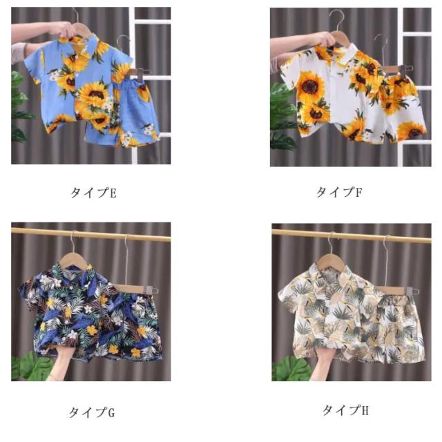 キッズ アロハシャツ セットアップ 上下セット 半袖シャツ シャツ 子供服 半袖 ハーフパンツ 男の子 女の子 男児 女児 こども服 子ども服 ベビー服 ジュニア カジュアル トップス ボトムス ハワイアン リゾート ウエストゴム 幼稚園 小学生 中学生 春 夏 送料無料
