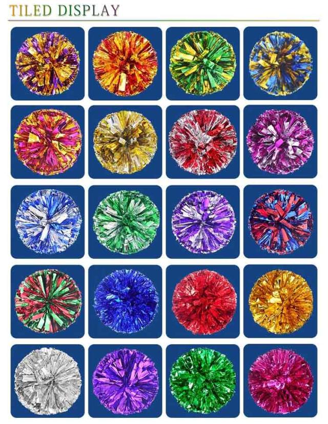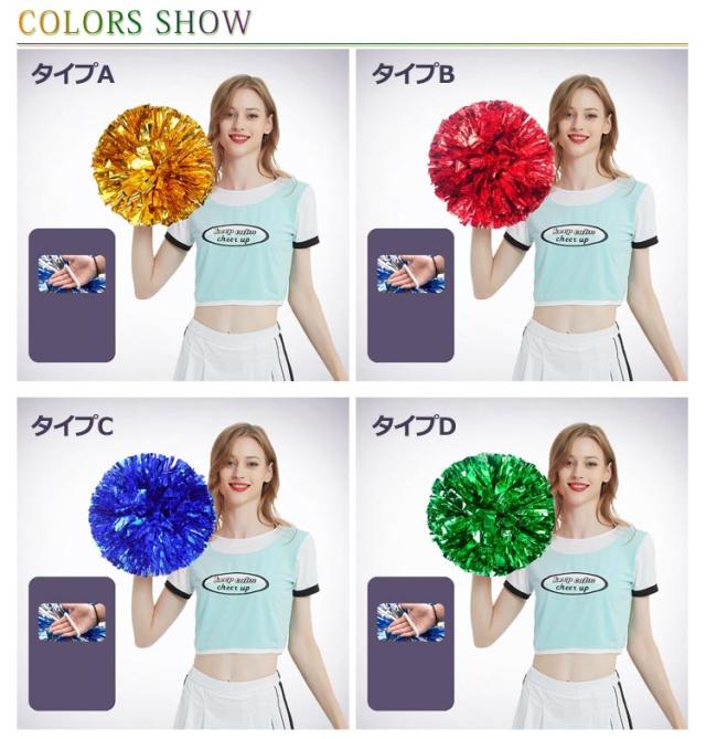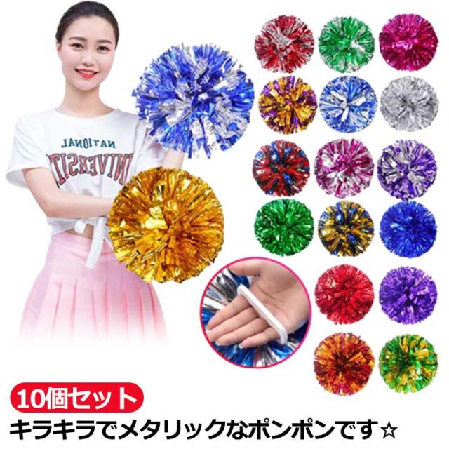 | キラキラでメタリックなポンポンです☆ 同色が10個入った1セットになり、両手に持って使う場合は5人分相当です。 チアダンスの小道具にピッタリなアイテム☆ 手を握して使うなので、楽に使えます☆ 運動会で踊るダンスの小道具、コンサート、応援グッズとしてもオススメです☆ | |