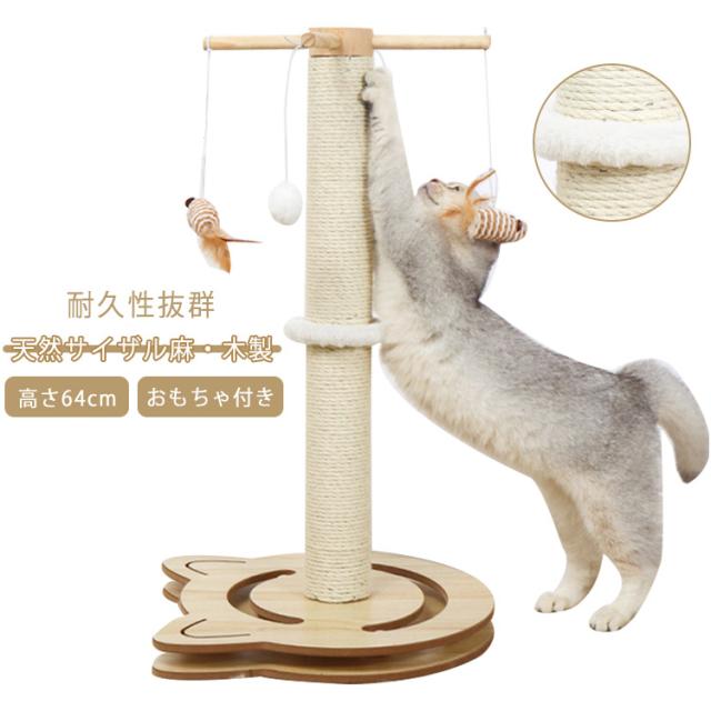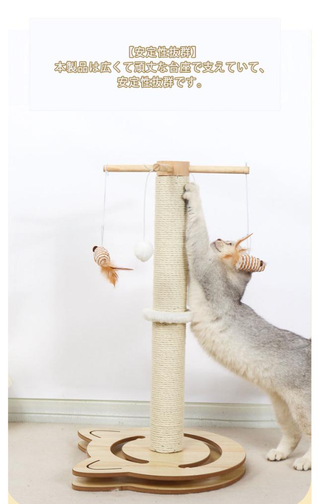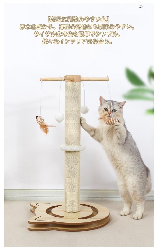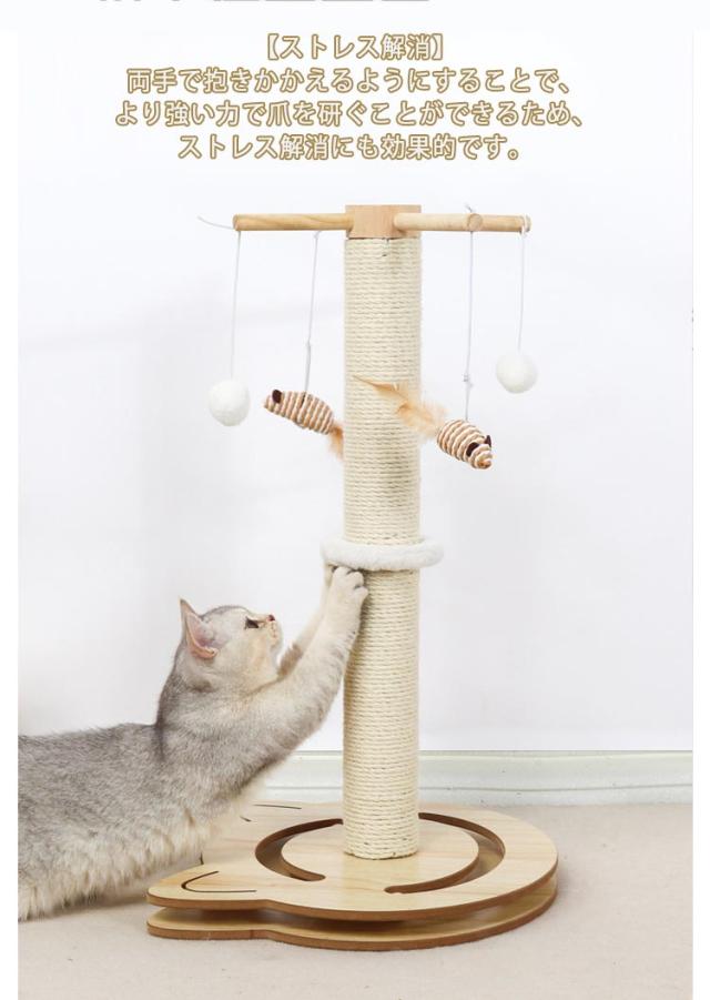 猫 爪とぎ キャットタワー 木製 ポール 麻縄 天然サイザル ポンポンおもちゃ 爪磨き キャットポール 猫 爪みがきポール おもちゃ付き ストレス解消 猫タワー つめとぎ 爪研ぎ 家具 壁 保護 サイザル麻 組立簡単 据え置