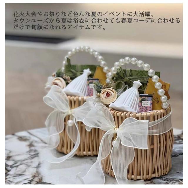かごバッグ 巾着 浴衣 カゴバッグ 内袋 レース付き カゴバック 巾着付き パール 真珠 持ち手 レディース 大人 かわいい かごバック 巾着 浴衣 トートバッグ 袋付き