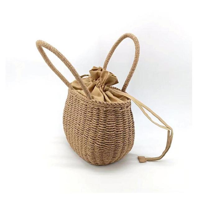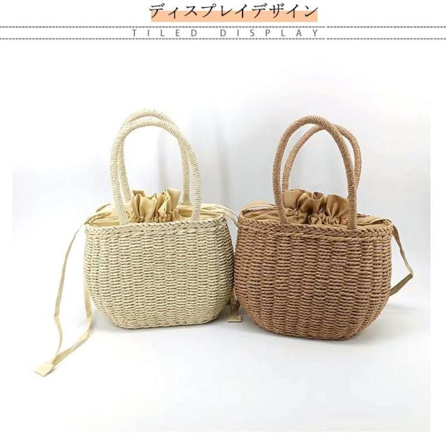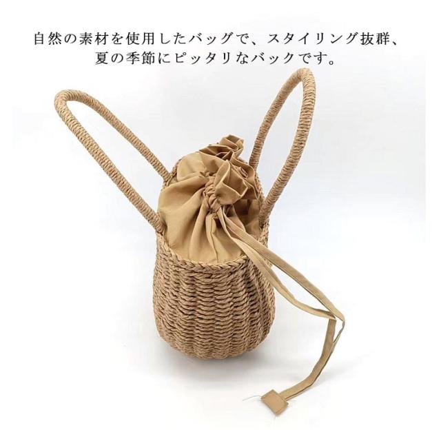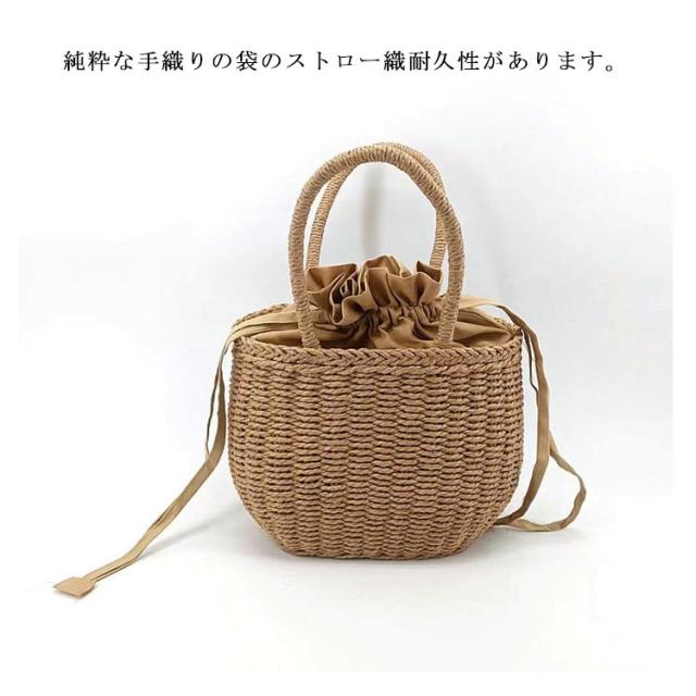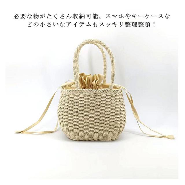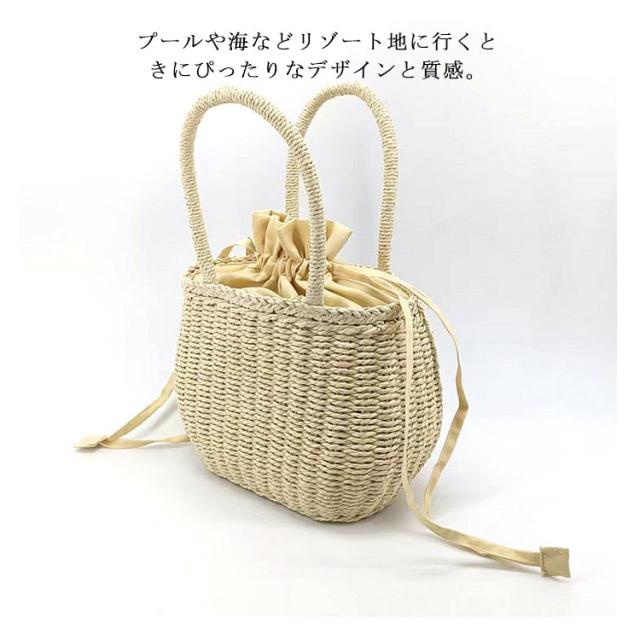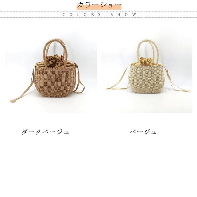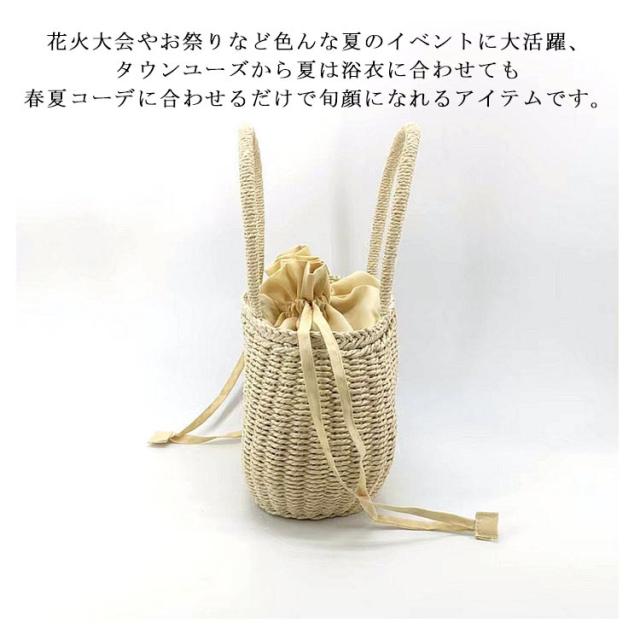 藤編みバッグ 巾着かごバッグ ストロー バスケットバッグ 浴衣バッグ 巾着 ピクニック 白 ハンドバッグ 夏用 手編みバッグ レディース ナチュラル 浴衣 かばん 海水浴 大容量 可愛い