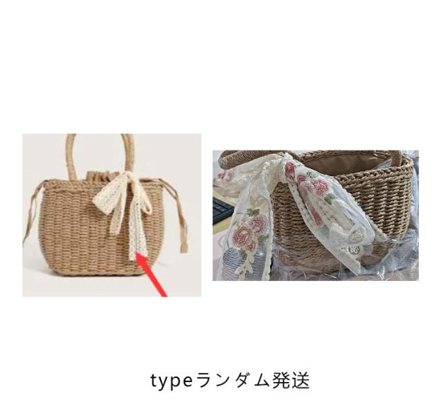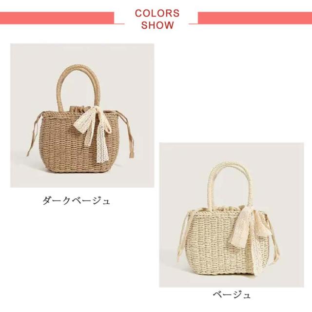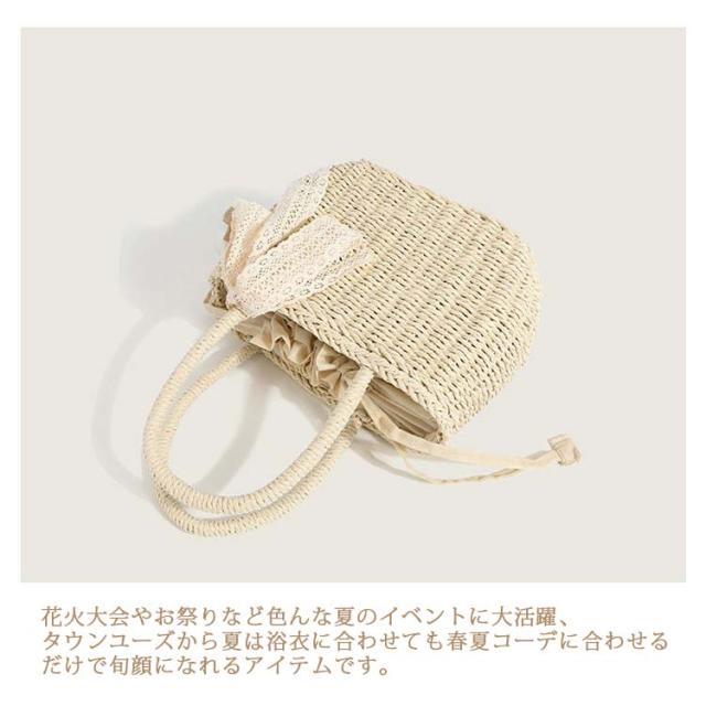 ストローバッグ 巾着 かごバッグ 浴衣 レディース ショルダー 軽量 手提げ 斜め掛け トートバッグ 白 編みバッグ 袋付き サマーバッグ 夏 ナチュラル レース リボン付き ハンドル 巾着 バッグ 浴衣 2way 大人かわいい