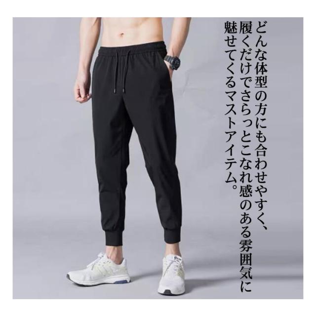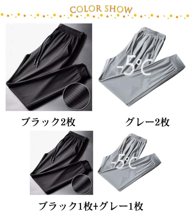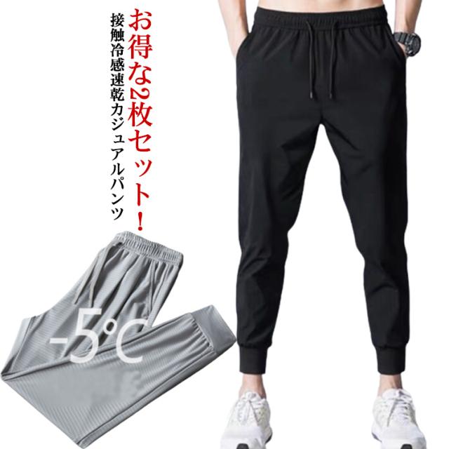 メンズチノパンツ アイスシルク ロングパンツ カジュアルパンツ メンズ 夏 薄手 ストレッチパンツ 2枚組 アイスシルクロングパンツ メンズ 接触冷感速乾カジュアルパンツ スポーツパンツ ジョガーパンツ