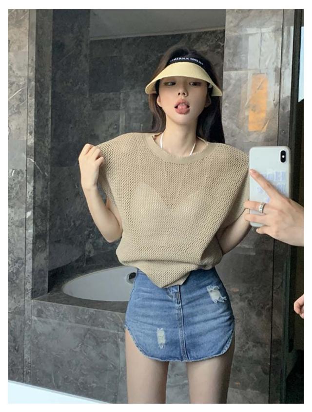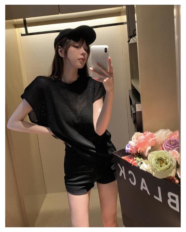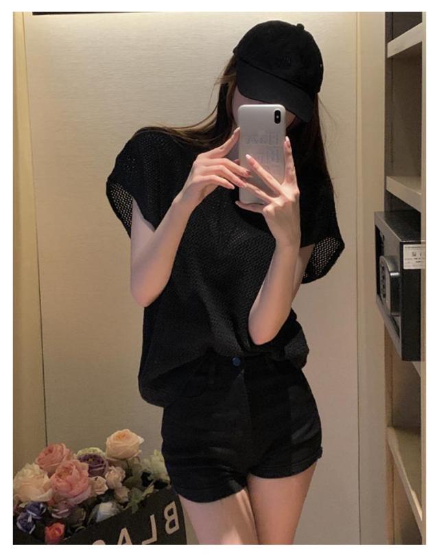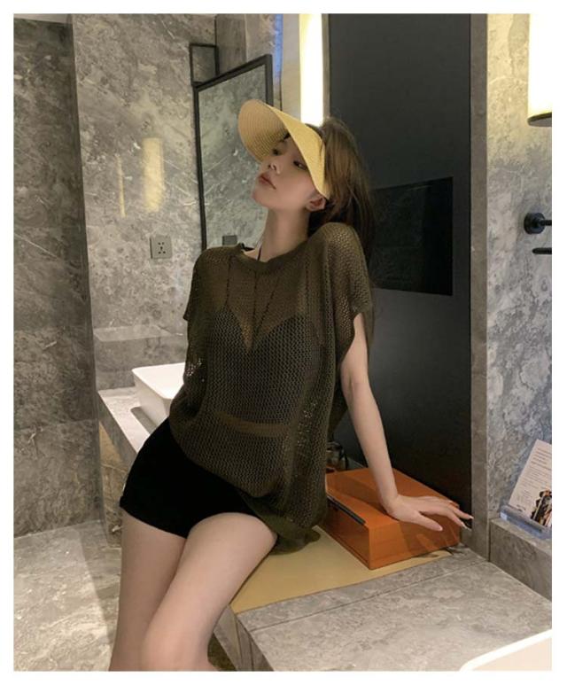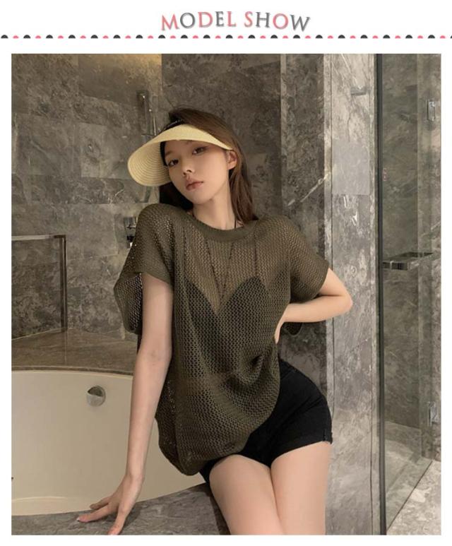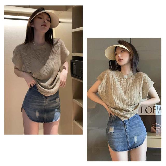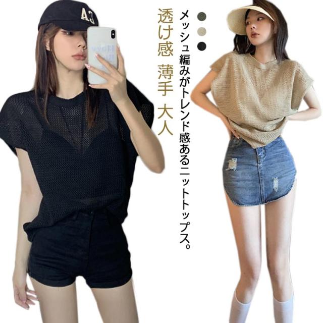 透かし編み 半袖ニット レディース サマーニット トップス メッシュ ニット透け感 薄手 大人 カジュアル 上品 きれいめ フェミニン 春 夏 秋 20代 30代 40代