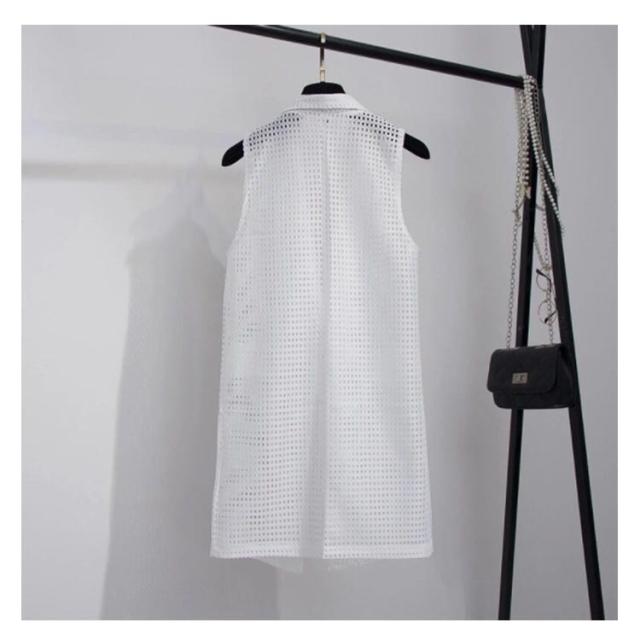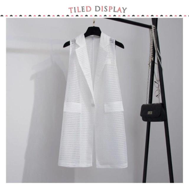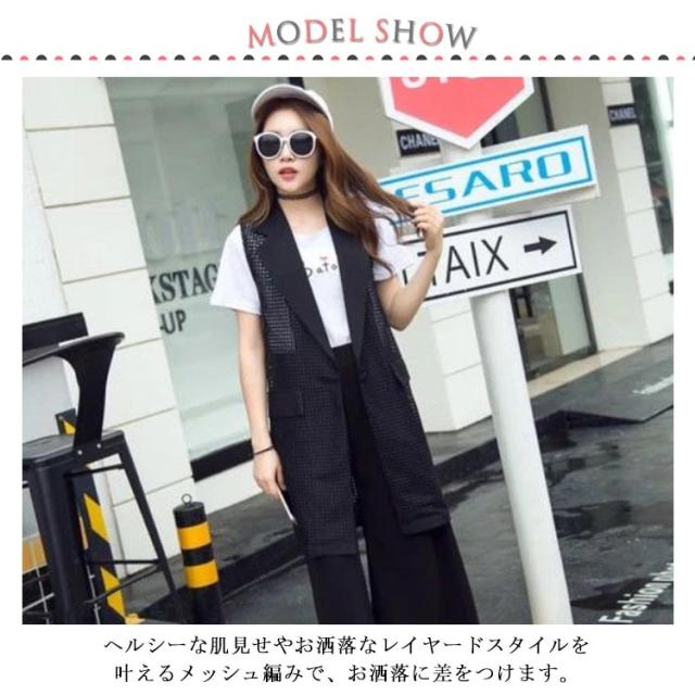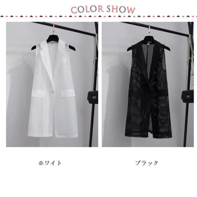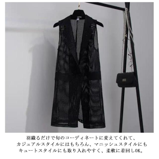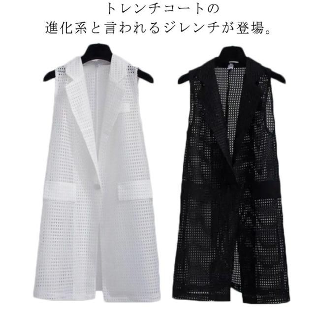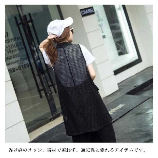 夏用ベスト メッシュベスト ロング ジレ ベスト レディース 透け感 羽織り 黒 白 送料無料