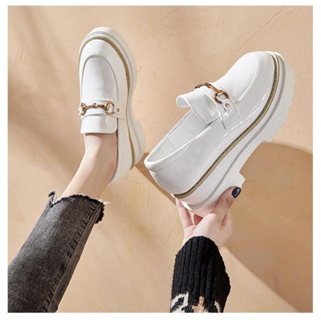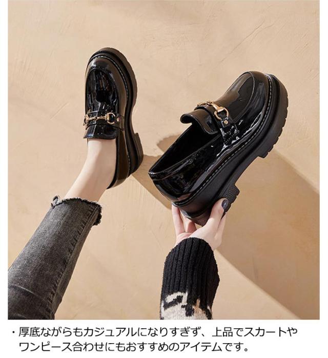 厚底 ローファー パンプス ローヒール レディース ビット 飾り 歩きやすい 履きやすい 疲れない 痛くない トレンド 7cmヒール プラットフォーム 春夏 通勤 通学 革靴 エナメル ハレの日 可愛い おしゃれ きれいめ カジュアル 合皮 全2色