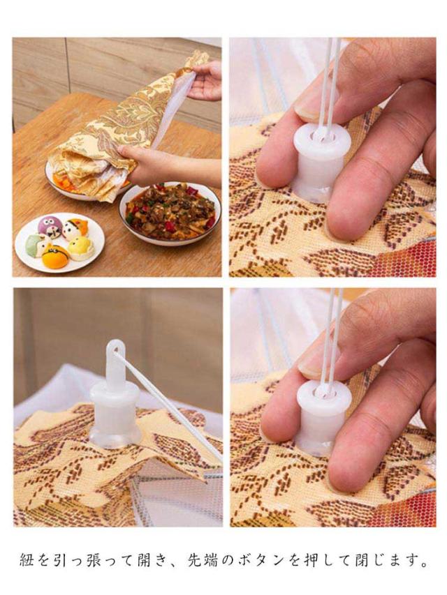 | 【食卓カバー】【幅42cm/60cm/70cm/80cm】【通気性】【折り畳み】 ホコリ・虫からお料理を守ることができる食卓カバーです。 スチール製の骨組みで丈夫に作られています。 本体はポリエステルで編まれたメッシュ生地で通気性が高く軽いです。 折り畳み式で、使用しない時はコンパクトに収納することができます。 紐を引っ張って開き、先端のボタンを押して閉じます。 洗える食卓カバーなので、汚れても安心。 ホームメイドのパンやお菓子を冷ます時にも使えます。 | |