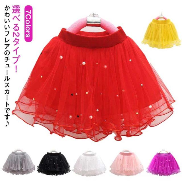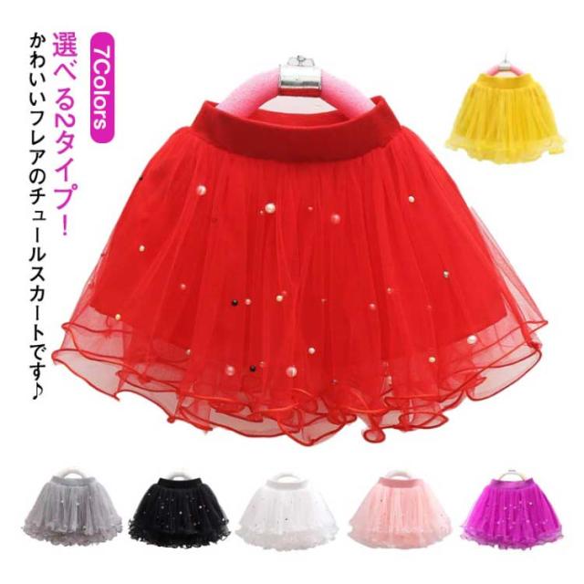 チュールスカート キッズ チュチュ スカート パール ボトムス 女の子 ミニスカート こども フレアスカート 可愛い 子供服 ふわふわ チュール 春服 秋服 冬服 春秋冬 送料無料 発表会 結婚式 幼稚園 保育園 お誕生日 ギフト プレゼント 大きいサイズ 送料無料