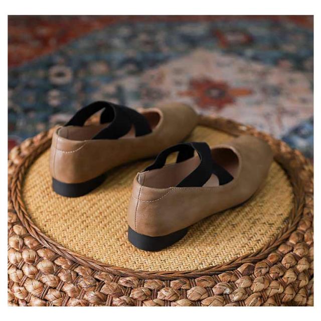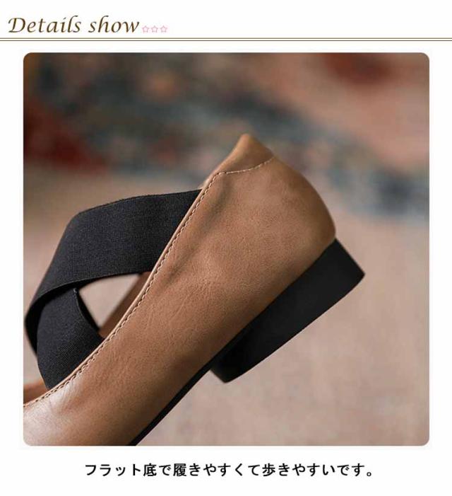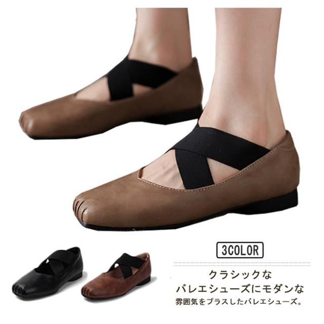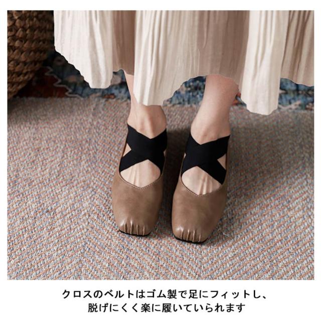スクエアトゥ バレエシューズ パンプス フラット レディース フラットシューズ ぺたんこ クロスバンド ゴムクロス バレエシューズ 痛くない 歩きやすい 疲れない クロスストラップ パンプス Vカット 本革 牛革 仕事 オフィス 通学 通勤 おしゃれ