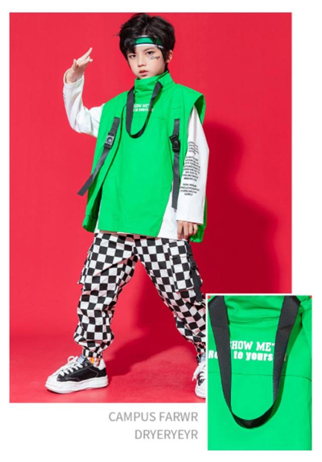 ダンス衣装 キッズ ヒップホップ ダンス服 スーツ セットアップ ジレ パンツ ロングパンツ 女の子 男の子 ダンス衣装 子供 hiphop ダンスウェア ストリート ジュニア 子ども服 ヒップホップ ダンス服 衣装 練習着 K-POP 発表会 110-180cm 送料無料 グリーン 緑