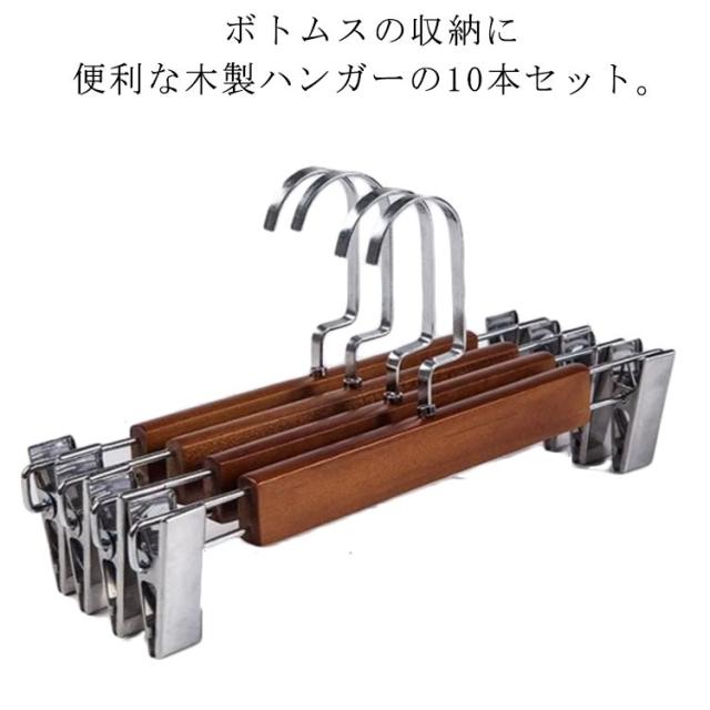 木製 ズボンハンガー 10本セット ピンチ クリップハンガー ボトムハンガー パンツハンガー スラックスハンガー スカート用 ズボン用ハンガー 360°回転 強力クリップ 落ちない すべらない 洗濯ハンガー おしゃれ 収納ハンガー スリム 新生活 引っ越し