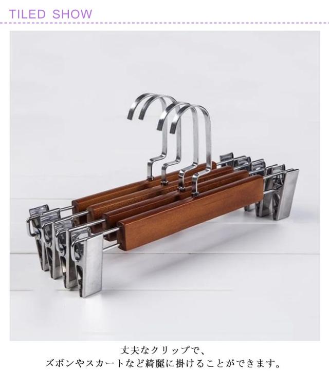 | ボトムスの収納に便利な木製ハンガーの10本セット。 丈夫なクリップで、ズボンやスカートなど綺麗に掛けることができます。 薄型仕様で省スペースで洋服を掛けられます。 フックが360度回転するので場所を選ばずお洋服が掛けられます。 木製のナチュラルな雰囲気でどんな部屋にもマッチ♪ | |