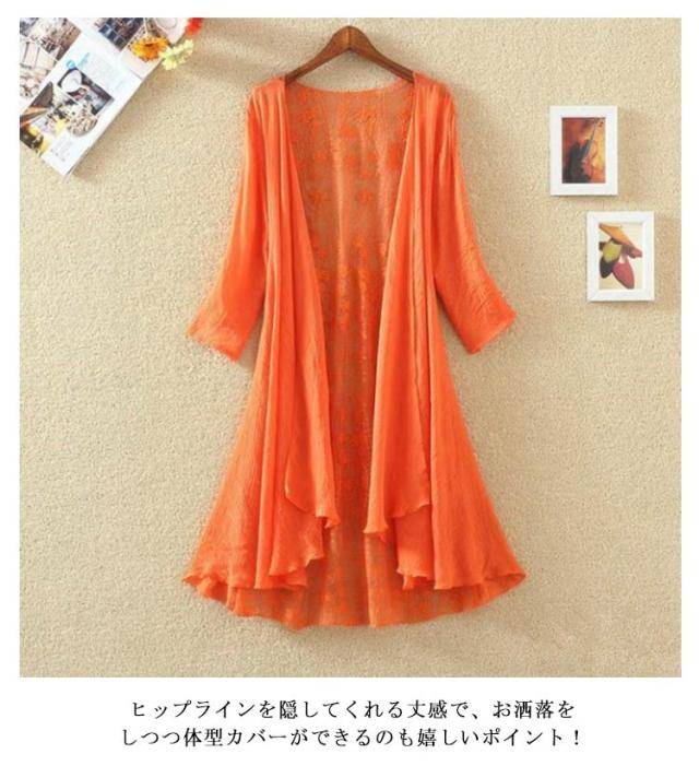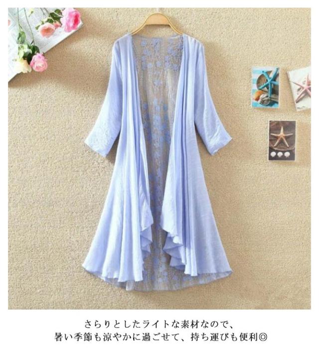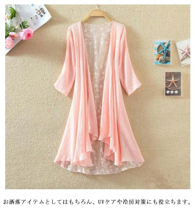 バックレース カーディガン 夏 七分袖カーディガン ロング丈 薄手 サマーカーディガン シースルー 透け感 7分袖 レース ガウン 羽織り ロングカーディガン 涼しい 春夏 ひんやり UVカット 紫外線対策 冷房対策 UV対策 大人 女性 部屋着 ギフト 送料無料