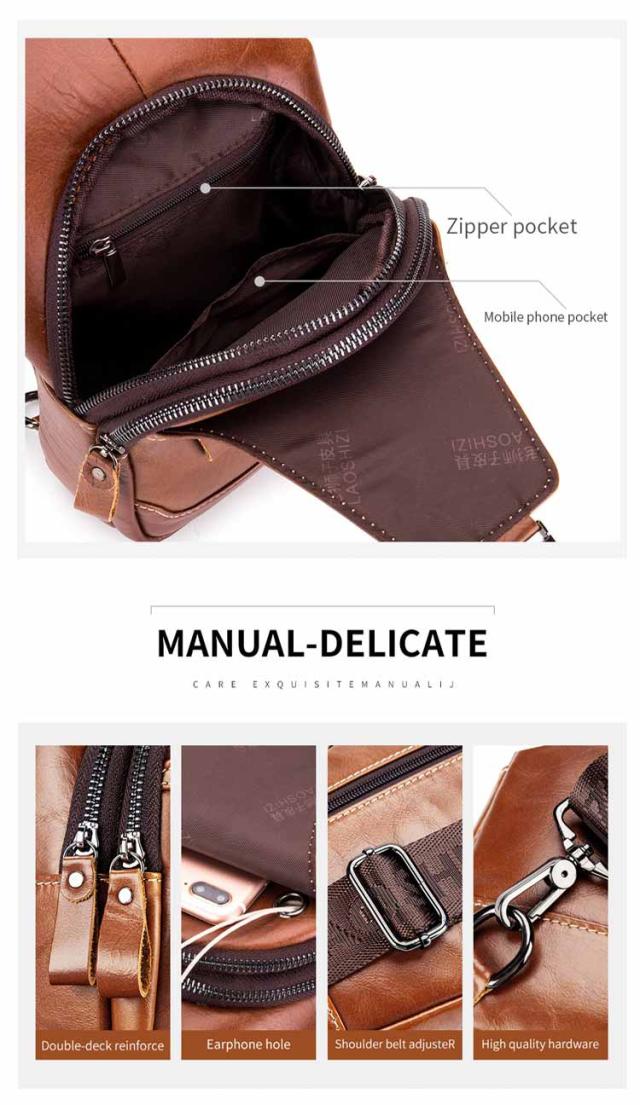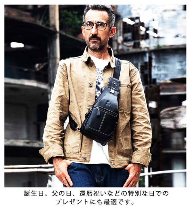 | 上質な本革で作ったボディバッグ。 贅沢な天然牛革素材で頑丈にできています。耐久性にも優れておりプライベート、アウトドア、通勤にも最適。 財布、スマートフォン、キーケース、ipad、傘などのお出かけに必要な荷物を持ち運べる、日常使いにちょうど良いサイズ感です。 大人が持つのにふさわしい、エレガントかつシンプルなデザイン。カジュアルスタイルはもちろん、オンオフ使えるアイテムです。 誕生日、父の日、還暦祝いなどの特別な日でのプレゼントにも最適です。 | |