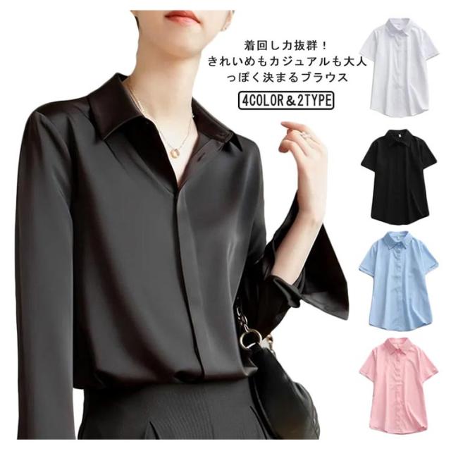 ブラウス オフィス シャツ レディース 長袖 半袖 襟付き ワイシャツ 仕事 春夏用 トップス オフィスカジュアル 通勤 前開き きれいめ おしゃれ かわいい 夏 大きめ 無地 フォーマル 春 秋 着痩せ 上品 20代 30代 40代 韓国風 OL 送料無料