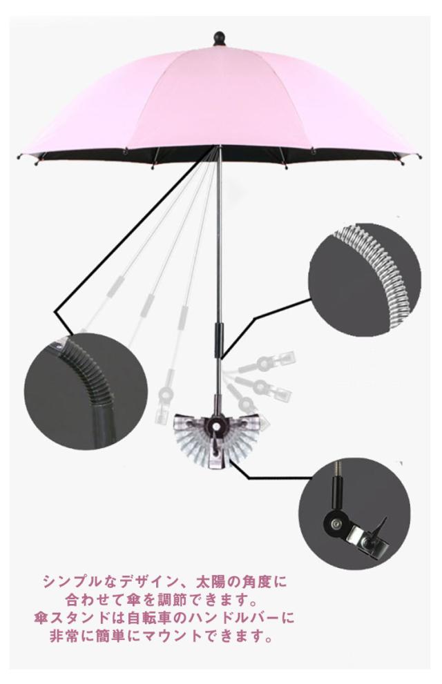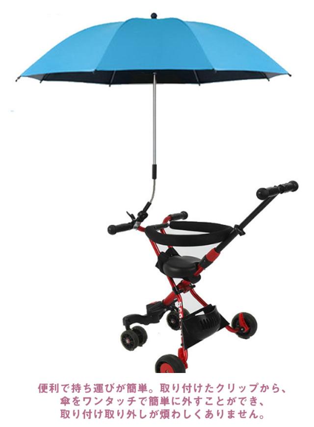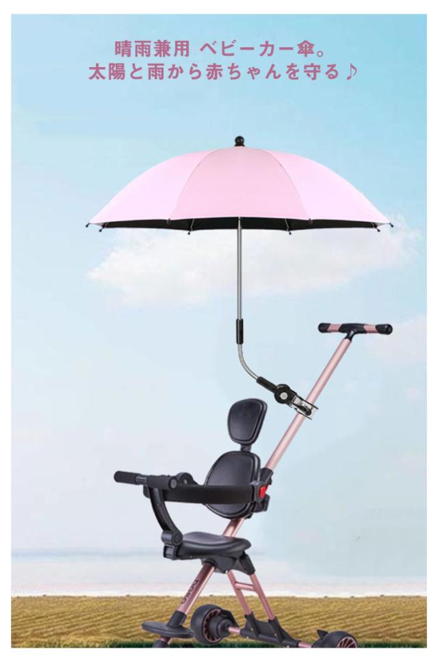 日傘 子供 ベビーカー用 パラソル 折り畳み式 調整可能 upf50+ 紫外線対策 晴雨兼用 雨具 日焼止め 日よけ 防風 ベビーカー傘 傘固定 ベビーカー用 自転車用 取り付け簡単 熱中症対策