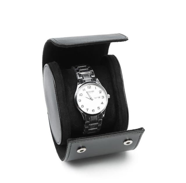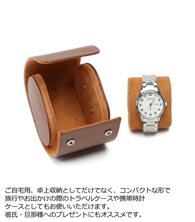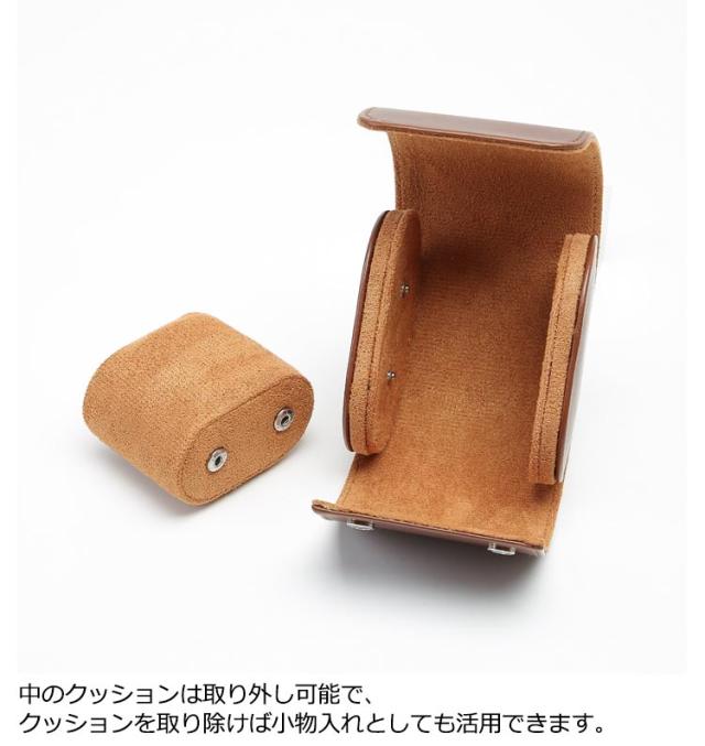 | コンパクトで携帯便利な時計ケース。【1本収納】 クッション性が高く防水性能に優れた肉厚で柔らかな特殊PUレザーを使用し、大切な小物を守ります。 PUレザーは本革に比べて軽く、防水性があり、傷がつきにくく、クッション性があり機能性に優れています。 バックルのデザインは使いやすく、保管しやすく、時計を損傷から保護します。 中のクッションは取り外し可能で、クッションを取り除けば小物入れとしても活用できます。 ご自宅用、卓上収納としてだけでなく、コンパクトな形で旅行やお出かけの際のトラベルケースや携帯時計ケースとしてもお使いいただけます。 彼氏・旦那様へのプレゼントにもオススメです。 大切な時計をホコリやキズから守る時計ケースです。旅行や外出時の携帯用時計ケースで、大切な時計をしっかり収納できます。 | |