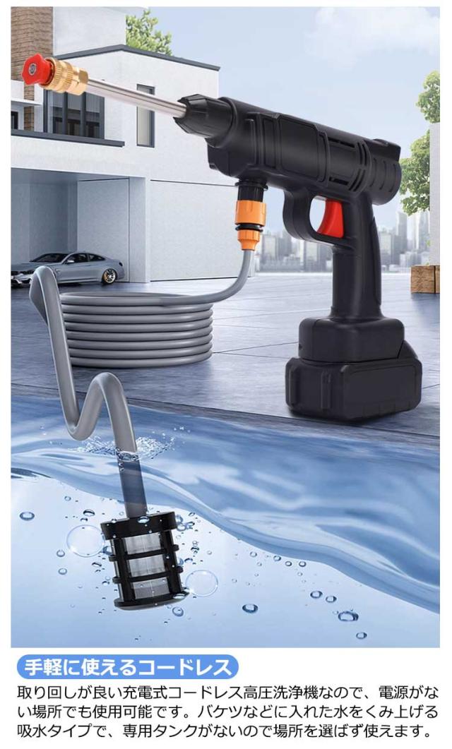 【バッテリー2個付*充電器】高圧洗浄機 コードレス 充電式 セット 大容量バッテリー 小型 ポータブル 自吸式 高圧洗車機 強力噴射 軽量 コンパクト 家庭用