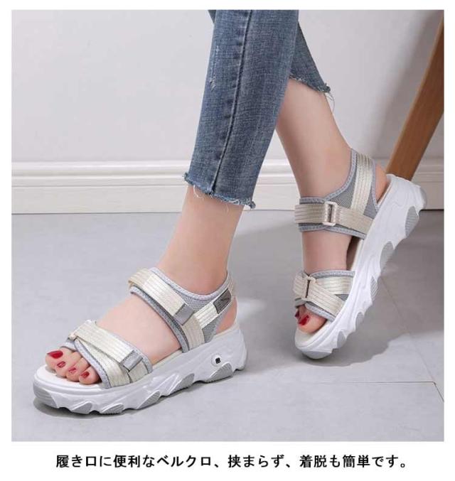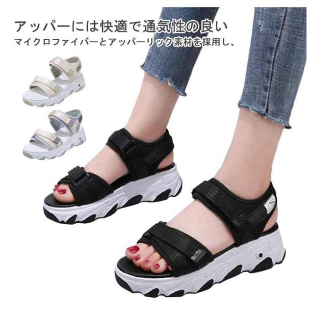 厚底サンダル レディース サマーサンダル スニーカーサンダル サンダル スポーツサンダル サンダル 厚底 広幅 サンダル 歩きやすい ストラップ 厚底 軽量 ベルクロ 疲れにくい 歩きやすい カジュアル 可愛い 美脚効果 歩きやすい